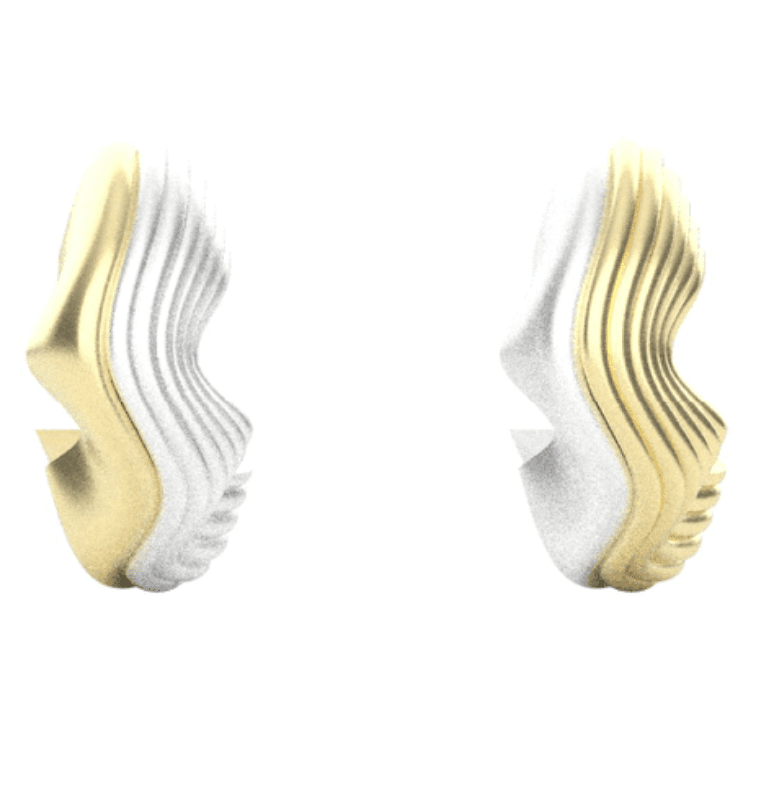 A two-toned, elevated everyday hoop featuring a versatile double-sided design. Smooth and textured surfaces paired with silver and gold tones add effortless versatility, making it a piece that is easy to grab for any occasion.